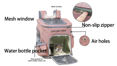 Different kinds of customized pet backpacks can be realized in our factory. Portable pet cat bags, shoulder pet bags, cat backpacks, dog backpacks, dog tote bags etc.